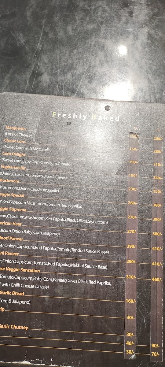 Onion, tomato, capsicum, baby corn, paneer, black olives, red paprika, finished with chilli cheese drizzle.